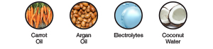 Coconut Water: Hydrates, conditions and helps protect the skin. It has anti-aging properties and helps prolong the life of a tan.