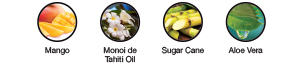 Monoi de Tahiti Oil: From Tahitian Coconut and Tiare (Gardenia) Flower, this blend deeply hydrates the skin without stripping itsnatural oils to nourish, condition and soothe skin. Anti-Aging properties help increase skin elasticity and prolong the life of a tan.