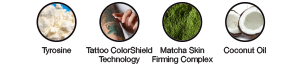 • Tattoo Color Shield Technology: Blend containing Essential Minerals, Aloe Vera and Algae to help maintain the color and vibrancy of tattoos.
