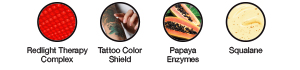 Tattoo Color Shield Technology: Blend containing Essential Minerals, Aloe Vera and Algae tohelp maintain the color and vibrancy of tattoos.