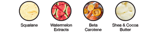 • Watermelon Extract: Extract is derived from the fruit, rind or seeds of the Watermelon. It is rich in Vitamins, Amino Acids, and Antioxidants that provide intense hydration and support the skin barrier. It is non-comedogenic (won’t clog pores) and soothes skin after UV exposure.